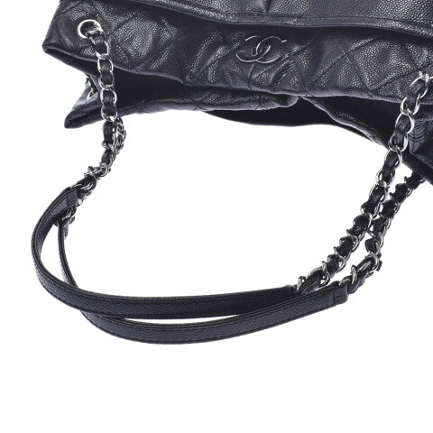 シャネルの中でも人気素材のキャビアスキンは、牛革に細かい粒状の隆起を型押し、丈夫で傷に強いことが特徴! こちらは光沢がありエレガントで、落ち着いた高級感を持ったチェーントートヴバッグ。